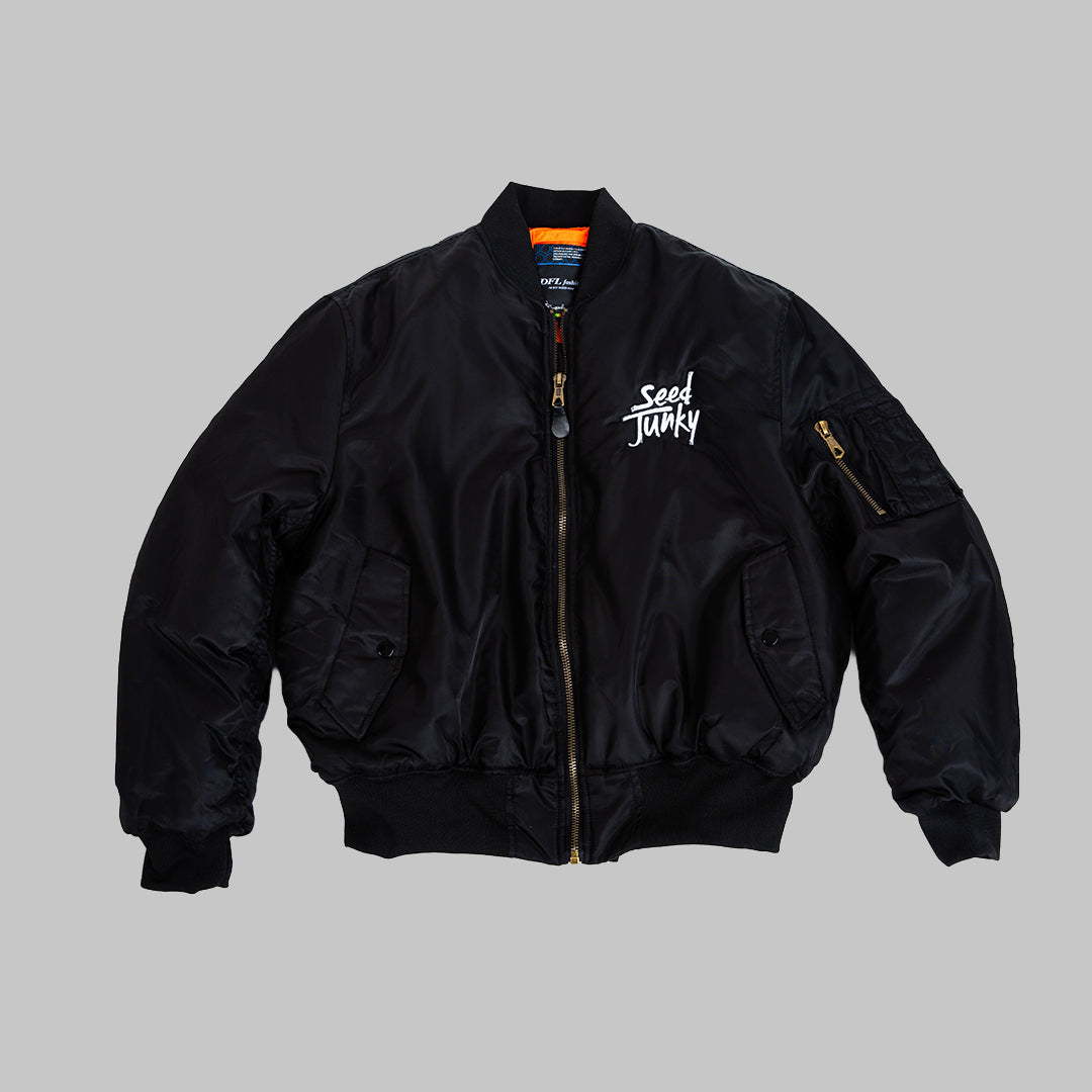 Seed Junky bomber jackets are stylish and comfortable, made from durable materials with a snug fit. They feature ribbed cuffs and hem, a sturdy zipper, and have the classic Seed Junky logo. Available in various colors, these jackets are great for casual wear and keeping warm. We recommend sizing up for the best fit.